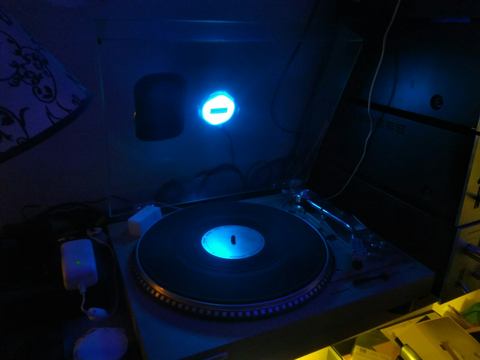 Nakładka jest dodatkowo wyposażona w budowaną lampkę LED RGB sterowaną pilotem, która oświetla od spodu przez przezroczystą pokrywę gramofon, jest to funkcja ozdobna, a zarazem przydatna przy użytkowaniu gramofonu w ciemnym pomieszczeniu.